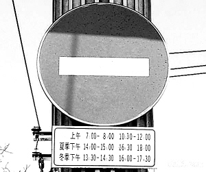 六一路上高懸的禁行牌?! 。犛昶奋?攝)