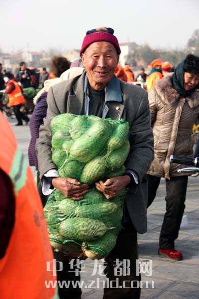 當天上午,淮陽縣太昊陵廣場人頭攢動,1000余名貧困家庭代表早早地來到現(xiàn)場等候。9時許,“愛心蘿卜”開始免費發(fā)放。僅一上午時間,20萬斤蘿卜就被認領一空。