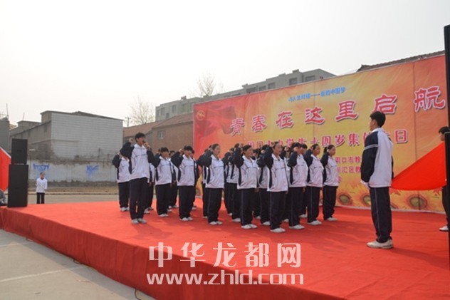 ????周口市中學(xué)生14歲集體生日慶?;顒?dòng)在《告別童年》的朗誦聲中開(kāi)始?!肚啻焊卸髌贰ⅰ都议L(zhǎng)寄語(yǔ)》和《老師寄語(yǔ)》鼓舞學(xué)生用責(zé)任導(dǎo)航人生,用青春放飛理想?;顒?dòng)中,愛(ài)心企業(yè)代表劉光中董事長(zhǎng)向?qū)W生們贈(zèng)送了生日蛋糕,市政協(xié)副主席楊珺與學(xué)生代表一起切生日蛋糕,并和一千多名中學(xué)生許下了青春的愿望。在中學(xué)生十四歲集體生日慶祝過(guò)程中,市人大副主任、市總工會(huì)主席游保峰為該?!扒嗄曛驹刚叻?wù)隊(duì)”授旗。