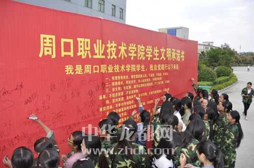 ????本報訊 昨日,周口晚報記者從周口職業(yè)技術學院了解到,新學期開始后,該校近萬名在校大學生簽訂了《學生文明承諾書》。承諾書中包含十條學生守則,為學生們的校園生活指明了方向。