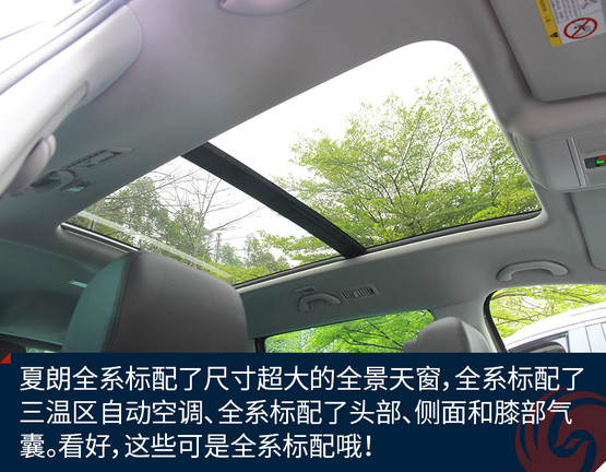 在配置方面,夏朗6座版也確實(shí)有值得稱道的地方,比如夏朗全系標(biāo)配了尺寸超大的全景天窗,全系標(biāo)配了三溫區(qū)自動(dòng)空調(diào)、全系標(biāo)配了頭部、側(cè)面和膝部氣囊??春茫@些可是全系標(biāo)配哦!