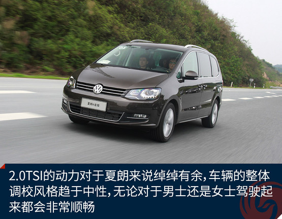 在駕駛方面,大眾汽車一貫的沉穩(wěn)風(fēng)格在夏朗上得到進(jìn)一步升華,畢竟這是一款注重家用的MPV車型。2.0TSI的動(dòng)力對(duì)于夏朗來說綽綽有余,車輛的整體調(diào)校風(fēng)格趨于中性,這也是大眾品牌所崇尚的風(fēng)格,所以夏朗這款車無論對(duì)于男士還是女士駕駛起來都會(huì)非常順暢,對(duì)于一個(gè)家庭來說不同的駕駛者都會(huì)對(duì)夏朗的駕駛感受表示滿意的。