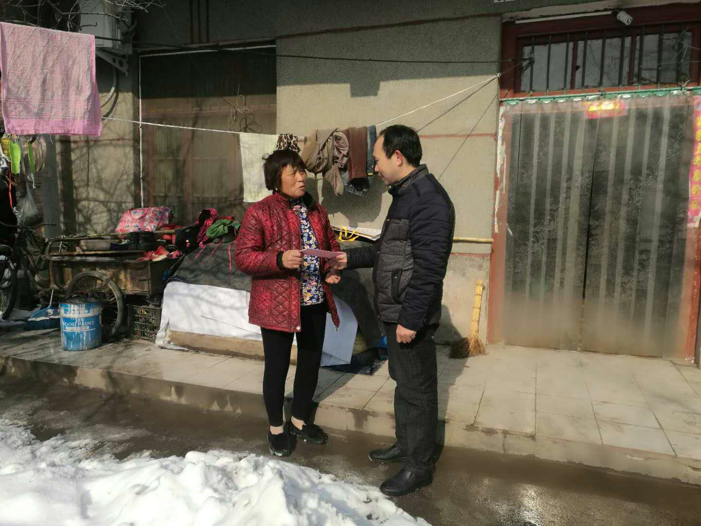 商水縣是全國扶貧開發(fā)重點縣,貧困人口多,連續(xù)一周的大雪惡劣天氣使困難群眾在生產(chǎn)、生活等方面面臨許多困難和問題。對此,商水縣委書記馬衛(wèi)東及時召開四個班子會議,要求縣鄉(xiāng)領(lǐng)導(dǎo)干部和脫貧攻堅駐村工作隊員把脫貧攻堅送溫暖活動當作政治任務(wù),抓在手上,放在心上,深入到貧困戶家中走訪慰問,與貧困戶交朋友、幫助解決實際困難;要求縣直各幫扶單位一把手帶隊,到派駐村查看貧困戶生產(chǎn)生活現(xiàn)狀,有針對性地開展慰問活動,在群眾“最急”上見真情、 “最盼”上做文章、“最難”上送溫暖,切實提升群眾的幸福感和滿意度。