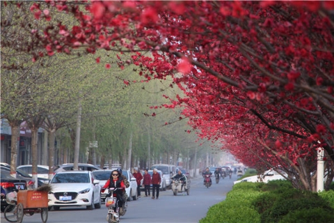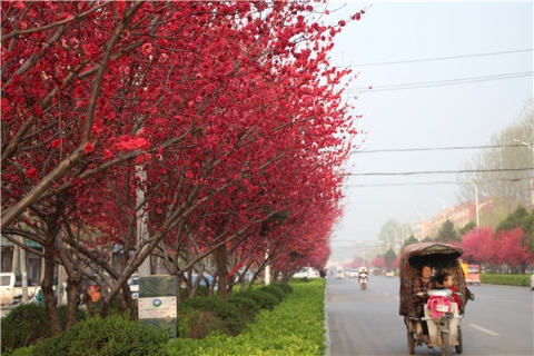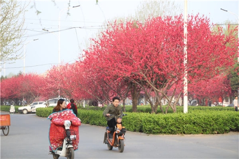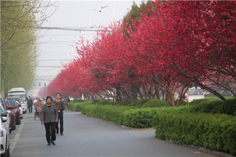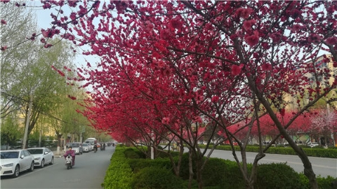 楊樹(shù)、垂柳、法桐,這是常見(jiàn)的綠化樹(shù),可是你見(jiàn)過(guò)整條道路用桃樹(shù)做綠化的嗎?在周口市建設(shè)大道西段,長(zhǎng)達(dá)1公里的主干道兩側(cè)種滿桃樹(shù)?,F(xiàn)在正值陽(yáng)春三月桃花盛開(kāi),整條道路成了一片花的海洋,儼然是鬧市區(qū)里的世外桃源。