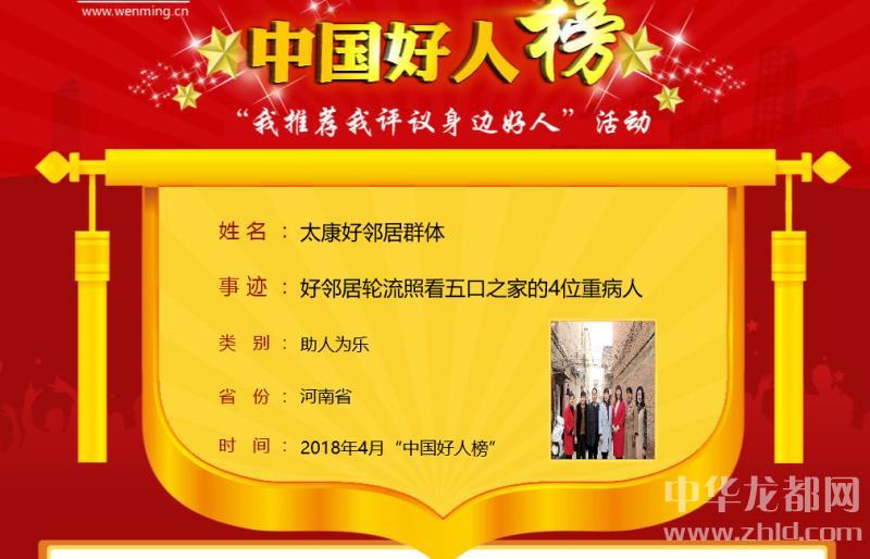 中華龍都網(wǎng)訊(周口報業(yè)全媒體記者 馬治衛(wèi))4月28日上午,4月中國好人榜發(fā)布儀式暨全國道德模范與身邊好人現(xiàn)場交流活動在天津市和平區(qū)舉行。太康縣“好鄰居群體”榮登4月份中國好人榜。