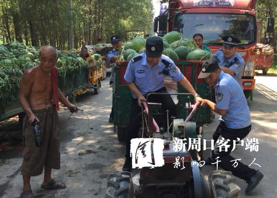 三伏天里,西瓜是不可或缺的消暑水果,但一些瓜農(nóng)在出售西瓜時(shí)卻往往忽視了交通秩序,因車(chē)輛停放不當(dāng)造成交通擁堵。扶溝縣公安局江村派出所民警冒著酷暑,加強(qiáng)轄區(qū)西瓜市場(chǎng)巡邏,及時(shí)疏導(dǎo)擁堵路段交通。圖為7月18日,民警正在疏導(dǎo)西瓜市場(chǎng)擁堵車(chē)輛。