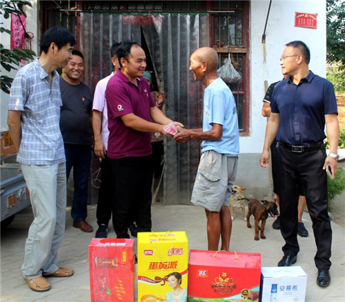 7月31日,該縣非公黨工委聯(lián)合遲營個私協(xié)會黨支部,組織部分非公企業(yè)黨員,在鄉(xiāng)村干部的帶領(lǐng)下,走訪慰問了遲營鄉(xiāng)孫莊村今年89歲的抗美援朝老兵華海山、龍坡村今年76歲的參加核實驗的退伍老兵霍付山、楊門村今年85歲的參加了抗美援朝作戰(zhàn)退伍老兵楊付清,給他們送去了蛋黃派、飲料、火腿腸等慰問品及200元慰問金。