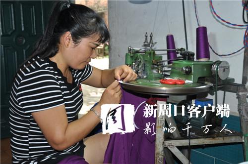 今年以來,商水縣實(shí)施精準(zhǔn)扶貧,大力發(fā)展服裝代加工,讓不能外出打工的貧困群眾從工廠領(lǐng)回設(shè)備和原材料在家加工,廠方上門進(jìn)行技術(shù)指導(dǎo)并回收成品。圖為該縣巴村鎮(zhèn)董村村民使用廠方提供的毛衣編織機(jī)在家加工羊毛衫。