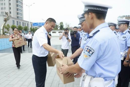 夏末秋初,鹿邑縣高溫天氣持續(xù)不斷,廣大民警忠誠履職、堅守一線,戰(zhàn)高溫、斗酷暑,全力維護人民群眾生命財產(chǎn)安全。8月16日下午,鹿邑縣四大班子領(lǐng)導(dǎo)付吉廣、張麗娟、王新民、劉銀、何新敏、宋克言等領(lǐng)導(dǎo)深入執(zhí)勤一線看望慰問了縣公安局交警大隊、巡特警大隊執(zhí)勤民警,并送去慰問品。