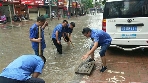 城市排澇保暢通。城管、交警等部門做好城市交通秩序和排澇工作。該縣《預(yù)案》特別對城市防汛提出詳細部署,特別是城管、交警在暴雨中從未停歇,一直在從事保暢通、疏堵排澇工作,許多市民感動不已,并積極參與到排澇工作隊伍中來。