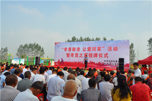 8月30日上午,化河鄉(xiāng)“孝善敬老 讓愛(ài)回家”活動(dòng)暨孝賢之家授牌儀式在該鄉(xiāng)高老村文化廣場(chǎng)舉行??h委常委、統(tǒng)戰(zhàn)部長(zhǎng)李遠(yuǎn)富、副縣長(zhǎng)何海中、縣工會(huì)主席盧紅兵應(yīng)邀出席?;余l(xiāng)黨政班子和近千群眾參加了活動(dòng)儀式。