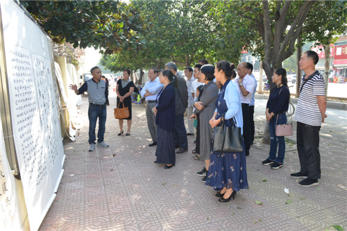 展出從9月24日開(kāi)始,持續(xù)到國(guó)慶假期。9月27日上午,記者在現(xiàn)場(chǎng)看到,前來(lái)觀看的市民絡(luò)繹不絕,不少書(shū)畫(huà)愛(ài)好者還拿起手機(jī)拍照。退休教師劉明指著一幅寫(xiě)有“脫貧攻堅(jiān) 你我同行”的書(shū)法作品說(shuō):“這些作品深情謳歌了干部群眾在脫貧攻堅(jiān)一線(xiàn)迎難而上的精神風(fēng)貌,真實(shí)反映了全縣各地在精準(zhǔn)扶貧工作中取得的成績(jī)。書(shū)畫(huà)作品展的舉辦,加深了干群對(duì)脫貧攻堅(jiān)的理解,豐富了大家的國(guó)慶文化生活,很有意義!”