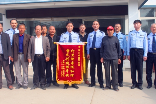 10月9日上午,李埠口鄉(xiāng)孫莊村數(shù)十名群眾代表,來到周口市公安局港區(qū)分局,將寫有“打黑除害促和諧,警民共建保平安”的錦旗和感謝信送到何學民政委的手中,村民代表對分局鐵腕鏟除該村“村霸”維護孫莊村和諧穩(wěn)定表示由衷的感謝。