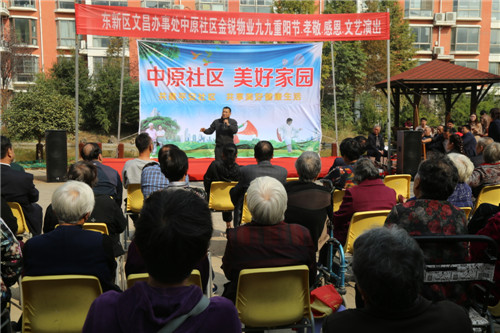金秋十月,菊花飄香。10月17日重陽節(jié)當(dāng)天,東新區(qū)中原社區(qū)攜同金銳物業(yè)在該社區(qū)組織開展了“擁抱新時(shí)代 歡度重陽節(jié)”文藝演出活動(dòng)。東新區(qū)社會(huì)事務(wù)局局長朱放哲,房屋征收中心主任閆國政,文昌辦事處主任李向峰,國庫支付中心副主任科員齊孟磊,文昌中學(xué)副校長康瑞玲參加活動(dòng)。