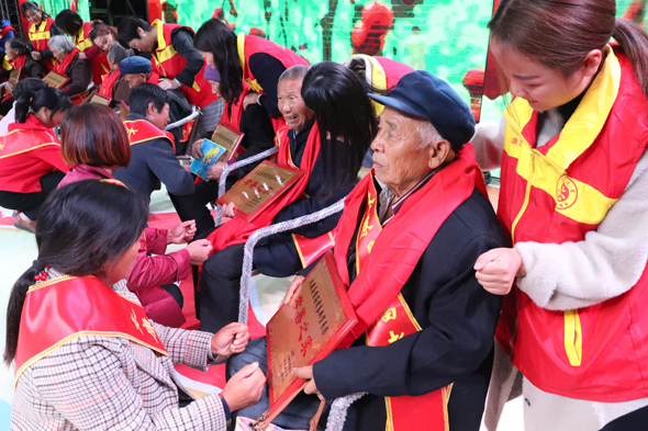 晚會上,縣領(lǐng)導(dǎo)對24個好婆婆、好兒子、好媳婦、好妯娌、好鄰居的典型進(jìn)行了表彰,號召全縣學(xué)習(xí)他們尊老敬老的精神和行為,24位受表彰者到臺上接受了縣領(lǐng)導(dǎo)頒獎?,F(xiàn)場觀眾盛贊這場晚會辦得好,辦得感人,不僅弘揚了孝道文化節(jié),更重要的是有廣泛的社會教育意義。有的表示要向孝順模范人物學(xué)習(xí),還有的表示要盡快回家去看望父母。