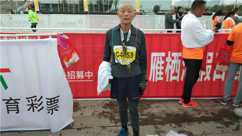 當(dāng)日上午10時(shí)許,孔祥義老人堅(jiān)持跑完了半程馬拉松21.0975公里的路程,臉上露出滿意的笑容。