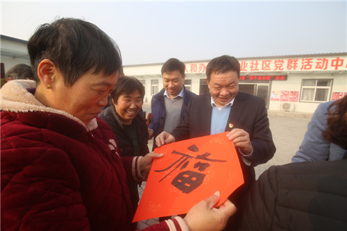 依然是在年末歲初的冬日暖陽里,12月20日中午1時30分,區(qū)委書記李宗喜再次來到川匯區(qū)小橋辦事處興業(yè)社區(qū),和10名書法家一起,現(xiàn)場為社區(qū)居民寫春聯(lián)送祝福。