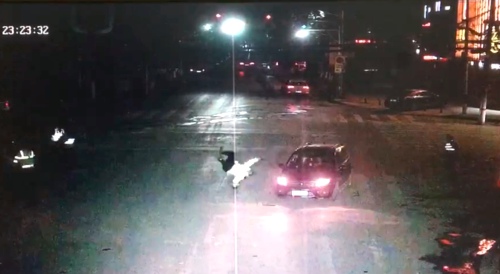 當晚23時23分,這輛車號為P733B1的黑色東風風行SUV汽車出現(xiàn)在路口。在強行闖過民警設立的卡點時后,又試圖左拐向文化路方向逃離,在路口西北角執(zhí)勤的路查四中隊協(xié)警石巖快速上前攔截。孰料,該車不但未停,反而加速向前沖,石巖躲閃不及被撞到該車擋風玻璃后又被撞出數(shù)米遠,重重地摔在馬路上。