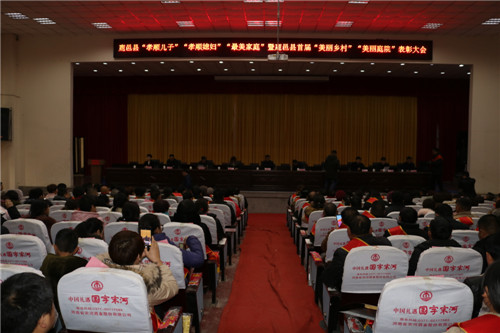 12月29日,鹿邑縣“孝順兒子”“孝順媳婦”“最美家庭”暨首屆“美麗鄉(xiāng)村”“最美庭院”表彰大會在縣委學校一樓報告廳召開??h領導付吉廣、武衛(wèi)東、劉銀、宋克言等出席會議??h委宣傳部、文明辦、縣總工會、縣婦聯、縣委農辦、縣扶貧辦等部門負責人與來自全縣各鄉(xiāng)鎮(zhèn)辦事處的300多名干部群眾代表參加會議。