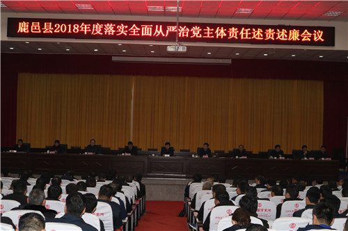 1月4日上午,鹿邑縣2018年度落實(shí)全面從嚴(yán)治黨主體責(zé)任述責(zé)述廉會(huì)議在縣委黨校一樓報(bào)告廳召開(kāi)。縣委書(shū)記梁建松出席會(huì)議并講話。縣委常委、紀(jì)委監(jiān)察委主任韓林主持會(huì)議??h直各局委主要負(fù)責(zé)人、派駐紀(jì)檢組、巡查辦主要負(fù)責(zé)人以及各鄉(xiāng)鎮(zhèn)辦事處黨(工)委書(shū)記、紀(jì)檢書(shū)記參加會(huì)議。