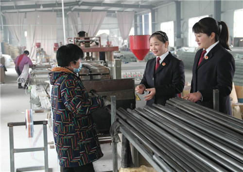 1月8日,扶溝縣檢察院幫扶干警來(lái)到固城鄉(xiāng)大王村扶貧車(chē)間,向正在加工窗簾杠的村民征求對(duì)扶貧工作的意見(jiàn)和建議。