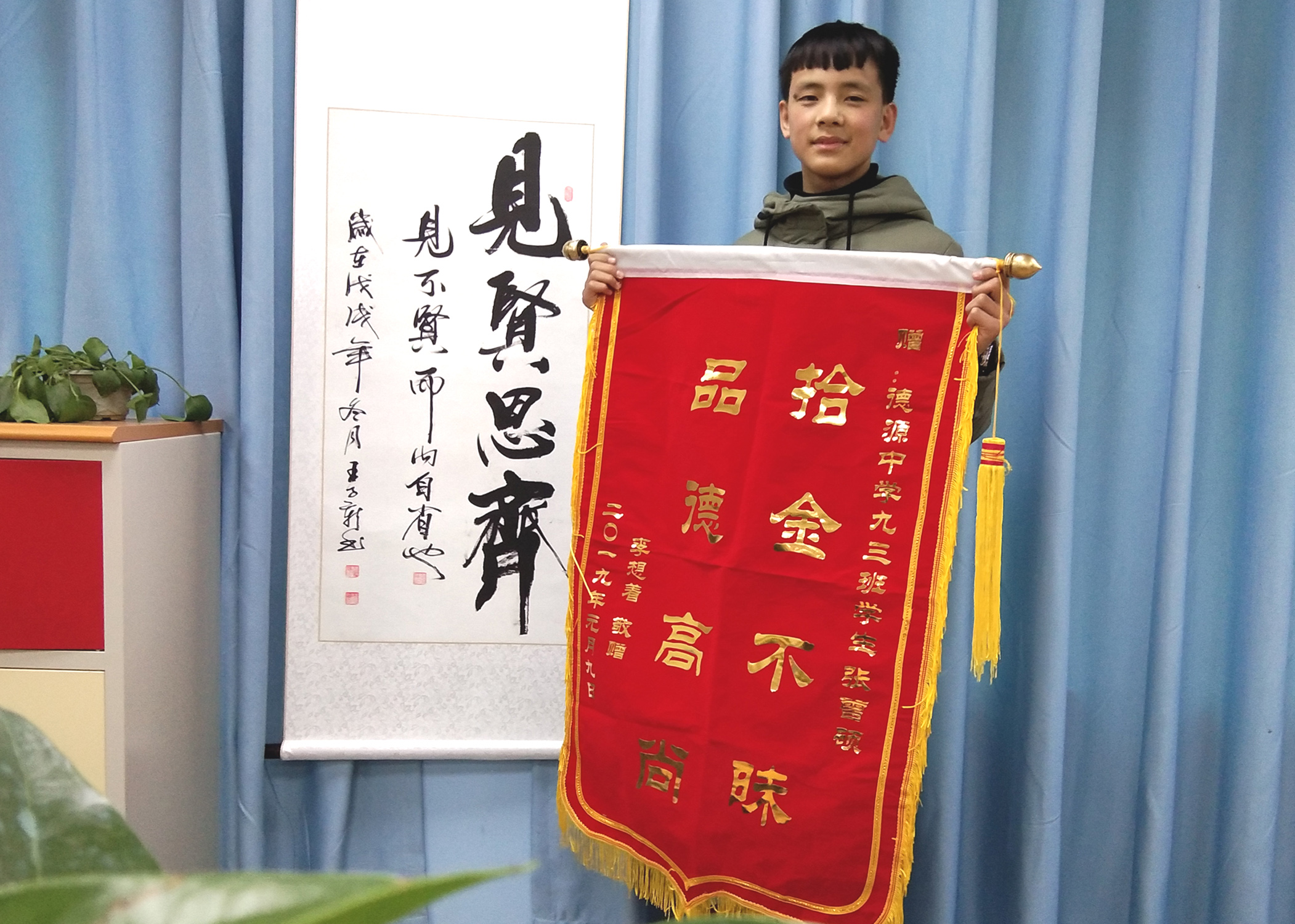 “我還以為找不回來了,里面除了錢還有那么多重要的證件,真的太重要了,我中午急著辦事情飯都吃不下!”下午3時(shí),失主李想著手拿一面加急制作的錦旗來到學(xué)校向張?jiān)T和尹紀(jì)偉老師表示感謝。他說,能有這樣品質(zhì)高尚、拾金不昧的好孩子,是老師精心培養(yǎng)、父母言傳身教的結(jié)果。