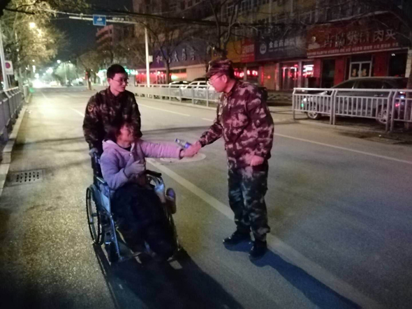 人民軍隊愛人民,無論山高水遠(yuǎn),歲暮天寒。2月18日凌晨1時許,武警周口支隊政委韓偉鋒查勤歸來,在支隊大門口恰巧遇到一位大姐獨自一人搖著輪椅艱難前行。當(dāng)晚氣象局預(yù)報有降雪,實時氣溫也只有-4℃。夜深人靜,天凝地閉,韓政委有些擔(dān)憂這位大姐的安全,連忙上前詢問情況,并步行推著輪椅將大姐送至目的地。其實,這件事只是武警周口支隊愛民助民工作的一個縮影。
