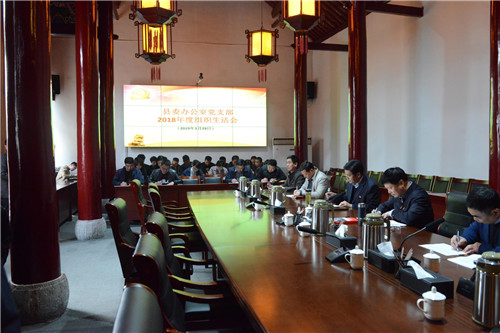 3月29日下午,鹿邑縣委辦公室黨支部召開(kāi)2018年度組織生活會(huì)并開(kāi)展民主評(píng)議黨員活動(dòng)。縣委書(shū)記梁建松,縣委常委、辦公室主任宋濤以一名普通黨員身份參加會(huì)議??h委辦公室機(jī)關(guān)全體同志參加會(huì)議。