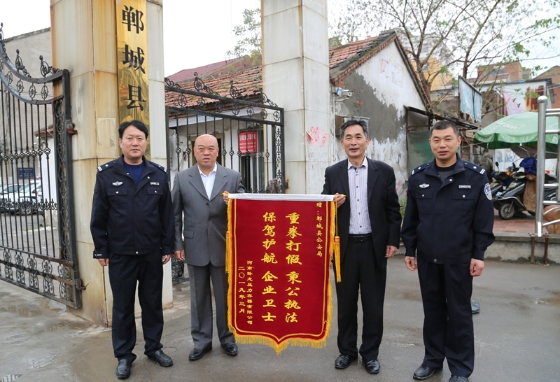 4月9日,南陽(yáng)市市場(chǎng)監(jiān)督管理局和臥龍壓力容器有限公司一行4人專程來到鄲城,向鄲城警方表示誠(chéng)摯的感謝,并將一面寫有“重拳打假秉公執(zhí)法 保駕護(hù)航 企業(yè)衛(wèi)士”的錦旗送到鄲城縣公安局食藥環(huán)大隊(duì)民警手中。