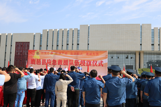 5月30日上午,鹿邑縣在縣文化中心廣場舉行應(yīng)急救援隊授旗宣誓儀式,縣委常委、常務(wù)副縣長陸志杰現(xiàn)場為全縣新整合的15支專、兼職應(yīng)急救援隊伍授旗,各應(yīng)急救援隊伍在推選代表的帶領(lǐng)下,共同舉起右手進(jìn)行了莊嚴(yán)的宣誓儀式。