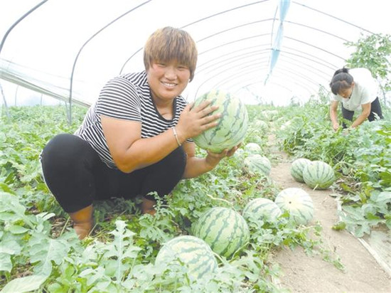 日前,沈丘縣周營鎮(zhèn)一大棚生態(tài)西瓜種植基地內(nèi),村民正在采摘搬運西瓜。近年來,在推進產(chǎn)業(yè)脫貧過程中,該鎮(zhèn)積極調(diào)整農(nóng)業(yè)產(chǎn)業(yè)結構,規(guī)模有序流轉土地,科學種植生態(tài)瓜果。目前,大棚生態(tài)西瓜種植已成為帶動農(nóng)民增收致富的“甜蜜產(chǎn)業(yè)”。