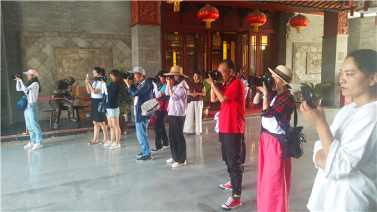 接著,采風隊伍走進中原紅木文化產(chǎn)業(yè)園。古典園林式紅木體驗中心、研發(fā)中心、紅木鑒定、拍賣中心、紫檀館、珍藏館、博物館等地都有人員駐足拍照或攝影。小橋流水間、曲徑回廊處模的特隊表演,也不時引來眾人觀看留影。