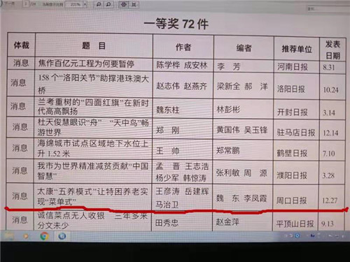 據(jù)介紹,本屆河南新聞獎獲獎作品具有“把握時代脈搏 謳歌時代精神”“反映重大主題 積極服務(wù)大局”“講述中國故事 彰顯主流價值”等特點,主題深刻、事實準(zhǔn)確、文風(fēng)生動、表現(xiàn)新穎,充分反映我省新聞戰(zhàn)線積極宣傳報道黨的十八大以來我省發(fā)展的歷史成就、歷史變革,報道我省各行各業(yè)改革開放的豐碩成果和感人事跡,特別是聚焦打贏精準(zhǔn)扶貧攻堅戰(zhàn),形成宣傳的強(qiáng)大聲勢。作品堅持正確的輿論導(dǎo)向、唱響主旋律、大力宣傳社會主義核心價值觀,為新時代中原更加出彩提供強(qiáng)有力的輿論支撐和良好的輿論氛圍?!短怠拔屦B(yǎng)模式”讓特困養(yǎng)老實現(xiàn)“菜單式”》具有“重大題材”“重大影響”“重大意義”等特點,經(jīng)過專家層層評審,最終在眾多參評作品中脫穎而出,一舉奪得了河南新聞獎一等獎。