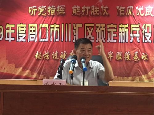 講到動(dòng)情處,海水干的眼里噙滿淚花。臺(tái)下掌聲雷動(dòng),表達(dá)著對(duì)老英雄的無(wú)限尊崇。海水干激勵(lì)廣大預(yù)定新兵到部隊(duì)后刻苦訓(xùn)練,不怕苦累,為周口爭(zhēng)光添彩,早日把立功受獎(jiǎng)。