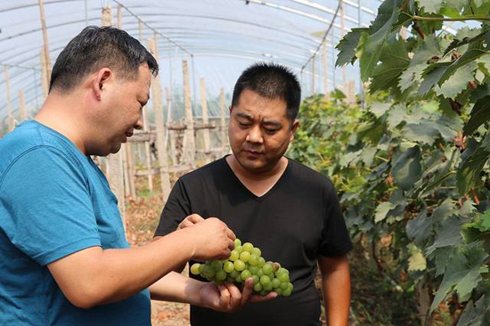 “2016年我們財政局出資13萬元,幫村民建了這個15畝的葡萄園,由30戶貧困戶做股東,孫東獻懂葡萄種植技術(shù)由孫東獻來管理,每年帶動近十戶貧困戶來葡萄園打工,每戶凈收入4000多元,加上出售葡萄的分紅,每戶凈收入提高到近5000元。并且這是個可持續(xù)發(fā)展的項目?!瘪v村書記侯俊昌介紹說。