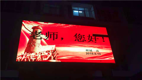 “老師,您好!”9 月10日晚上,鄲城縣人民公園大屏幕上,向全縣教師發(fā)出了溫暖、明亮的祝福。同一時刻,城區(qū)各主要街道公共LED大屏幕,以及縣一高、三實小等城區(qū)學校和石槽一中、秋渠一中等鄉(xiāng)村學校的顯示屏上,“老師,您好”四個大字在夜幕下顯得格外的醒目與亮眼。教師節(jié)當夜,老師儼然成為了“夜空中最閃亮的星”。