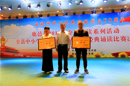 9月27日,由中共鹿邑縣委宣傳部主辦、鹿邑縣教育體育局承辦的慶祝中華人民共和國成立70周年、鹿邑縣2019年全民閱讀系列活動——全縣中小學(xué)生“歡樂進(jìn)萬家”經(jīng)典誦讀比賽(決賽)在弘德中學(xué)報(bào)告廳舉行,在初賽中嶄露頭角的十六個單位的近800名師生參加了決賽。