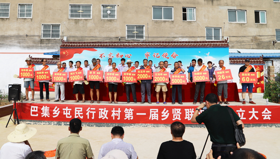 “段志軍每年都捐資捐物回報(bào)家鄉(xiāng),他去年捐30萬為巴集大街和屯民村安裝的200多盞路燈已經(jīng)亮了,捐85萬元新建的村室馬上竣工,將是全縣標(biāo)準(zhǔn)最高的,現(xiàn)在又捐60萬元;劉振發(fā)這幾年捐了40萬多,給村里修路、栽樹、幫扶貧困戶,今天又捐26萬;鄉(xiāng)賢會成立之前,大家已累計(jì)捐款240多萬元……”在今年8月6日屯民行政村鄉(xiāng)賢會成立儀式上,朱明理宣布捐款名單時多次被雷鳴般的掌聲打斷;“最難忘的就是村口的那棵大楊樹,最好吃的就是中午剩的涼面條、晚上嗑著大蒜吃?!痹谌T峽創(chuàng)業(yè)的劉振發(fā)的發(fā)言勾起了眾多游子的親情回憶;“啃個干饃,灶火里燒個辣椒一砸,撒點(diǎn)兒鹽就是最好吃的。”在商丘任職的徐其山接過話茬說;“事業(yè)越大,工作越忙。但是,他們從四面八方歸來,這就是對家鄉(xiāng)的情誼,我們村肯定會越來越好?!编l(xiāng)賢徐其民感慨地說;“從屯民走出的大學(xué)生不少,如今長成了企業(yè)家、行政干部等等,如參天大樹,卻不忘根、不忘本,這就是屯民的驕傲?!睆氖陆逃袠I(yè)35年的鄲城二高校長趙耀身為屯村一員感觸良多……