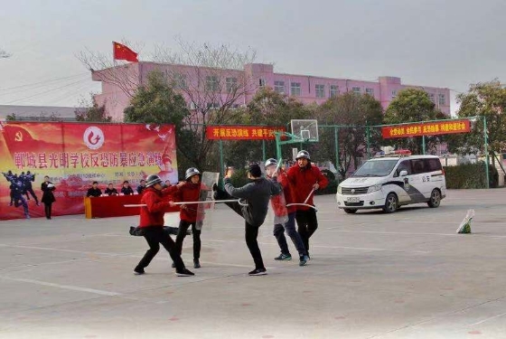 為切實(shí)做好“平安校園”建設(shè)工作,進(jìn)一步增強(qiáng)全縣師生對(duì)突發(fā)暴恐事件的防范意識(shí),提升在面對(duì)暴恐事件時(shí)自護(hù)自救及有效逃生避險(xiǎn)能力,最大限度減少因突發(fā)暴恐事件對(duì)師生造成的傷害,提高學(xué)校安全保衛(wèi)應(yīng)急處置和管理水平,12月20日上午,鄲城縣反恐辦組織相關(guān)單位在光明中學(xué)開(kāi)展防暴恐知識(shí)培訓(xùn)和演練。