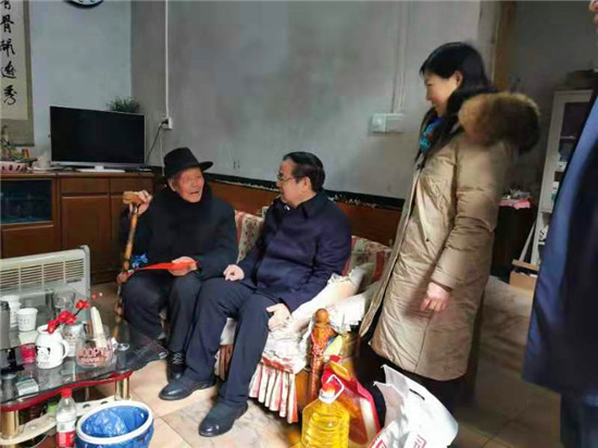 在鹿邑縣中心敬老院娛樂室內(nèi),劉國連、胡軍與老人一一握手,向老人們詢問吃的好不好、住的暖不暖、年貨全不全。同時(shí)叮囑養(yǎng)老院負(fù)責(zé)人要照顧好老人們,讓他們過上一個歡樂祥和的春節(jié)。