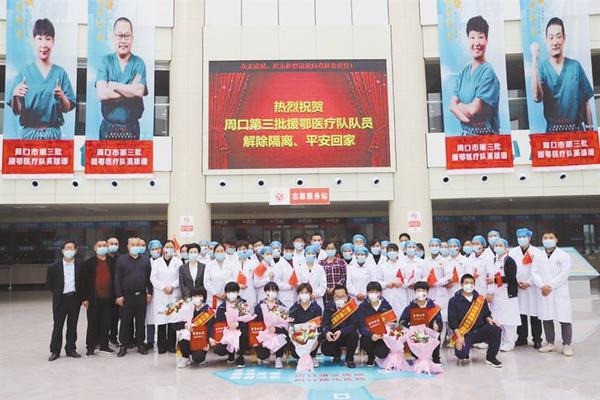本報(bào)訊 (記者 宋風(fēng) 文/圖) 4月15日,周口港區(qū)醫(yī)院8位援鄂醫(yī)療隊(duì)員解除隔離回到單位,港區(qū)醫(yī)院為他們舉行了熱烈的歡迎儀式(右圖)。港區(qū)黨委委員張東立出席歡迎儀式,對(duì)港區(qū)醫(yī)院的8位抗疫英雄圓滿完成援鄂醫(yī)療救治任務(wù)平安歸來表示祝賀。