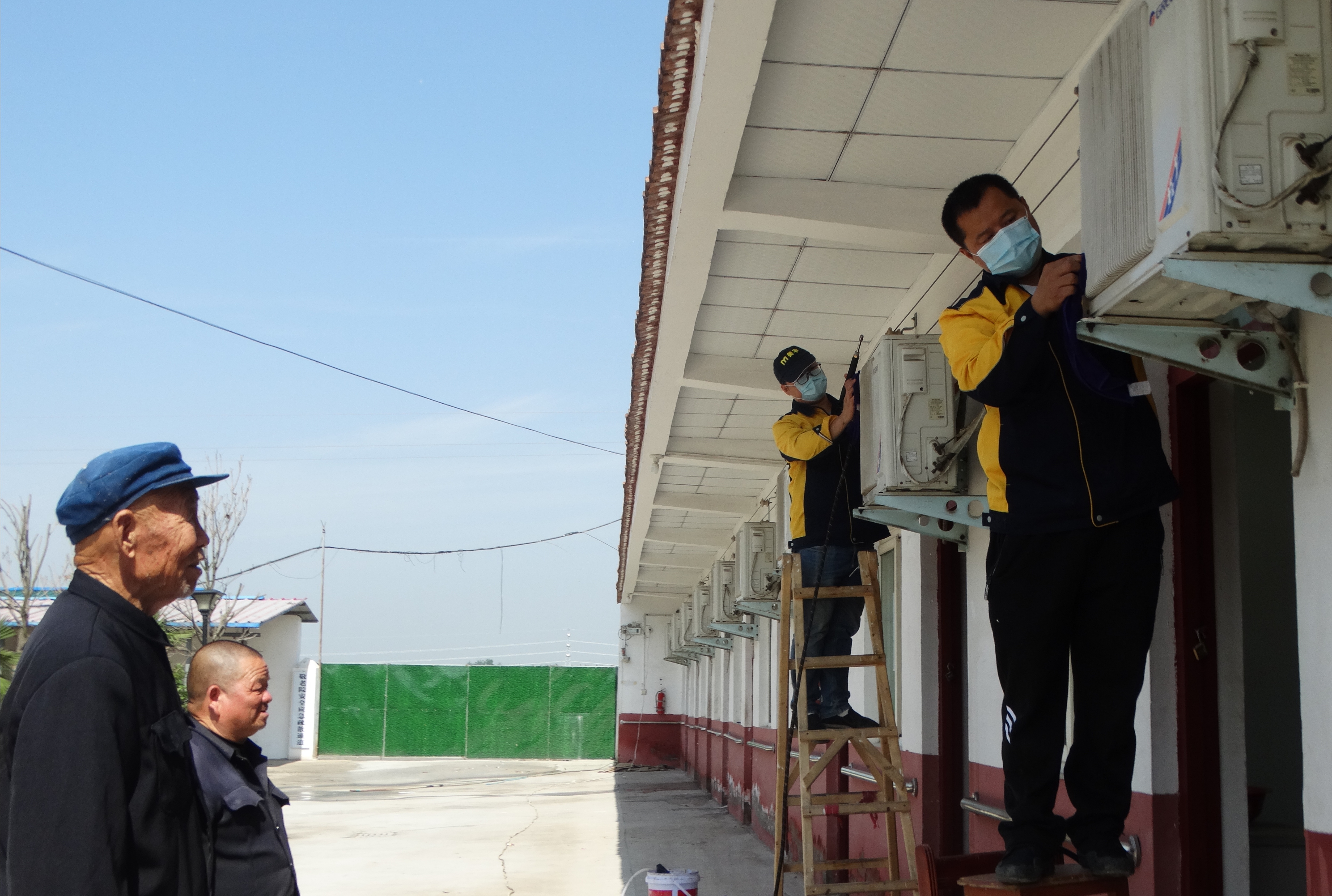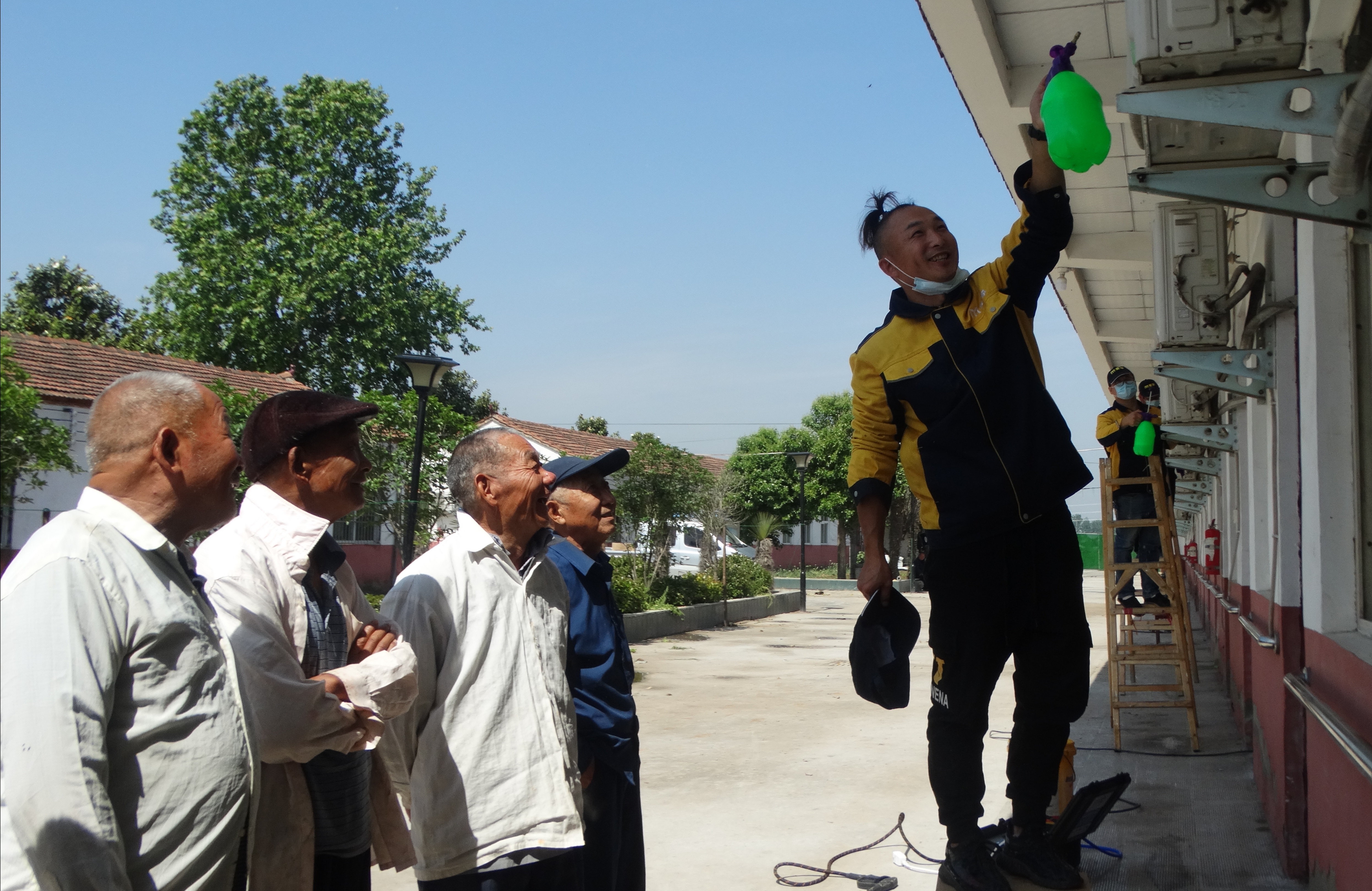 在敬老院,沈丘縣點(diǎn)滴電器公司的職工認(rèn)真為每個(gè)五保老人房間的空調(diào)都進(jìn)行了清洗、消殺、維護(hù)?!跋胂胂奶靵淼搅?,看到自己房間的空調(diào)被清洗得干干凈凈,俺打心眼里高興。”坐在樹蔭下休息的五保老人王大媽興奮地告訴記者。