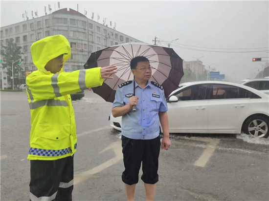 大雨滂沱,交通擁堵。7月22日,針對(duì)市區(qū)降大雨且部分路段出現(xiàn)嚴(yán)重積水的情況,交警及時(shí)啟動(dòng)惡劣天氣應(yīng)急預(yù)案,迅速投入到工作中。