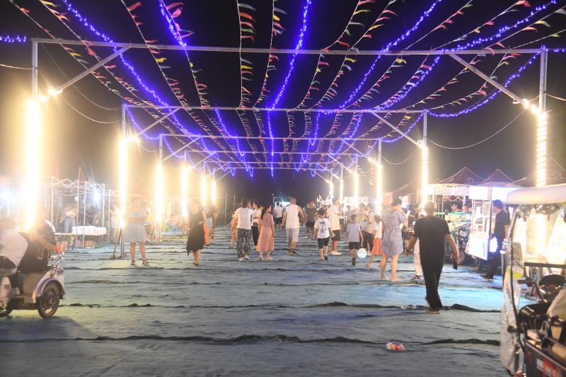 該夜市場地由商水縣水韻章華文商旅項目提供,占地近百畝,設有100多個攤位,經(jīng)營范圍包括吃喝玩樂娛、服裝百貨等,每天晚上6點多營業(yè),11點收攤,周末客流高峰時游客有3000多人,其中不少來自周口中心城區(qū)。
