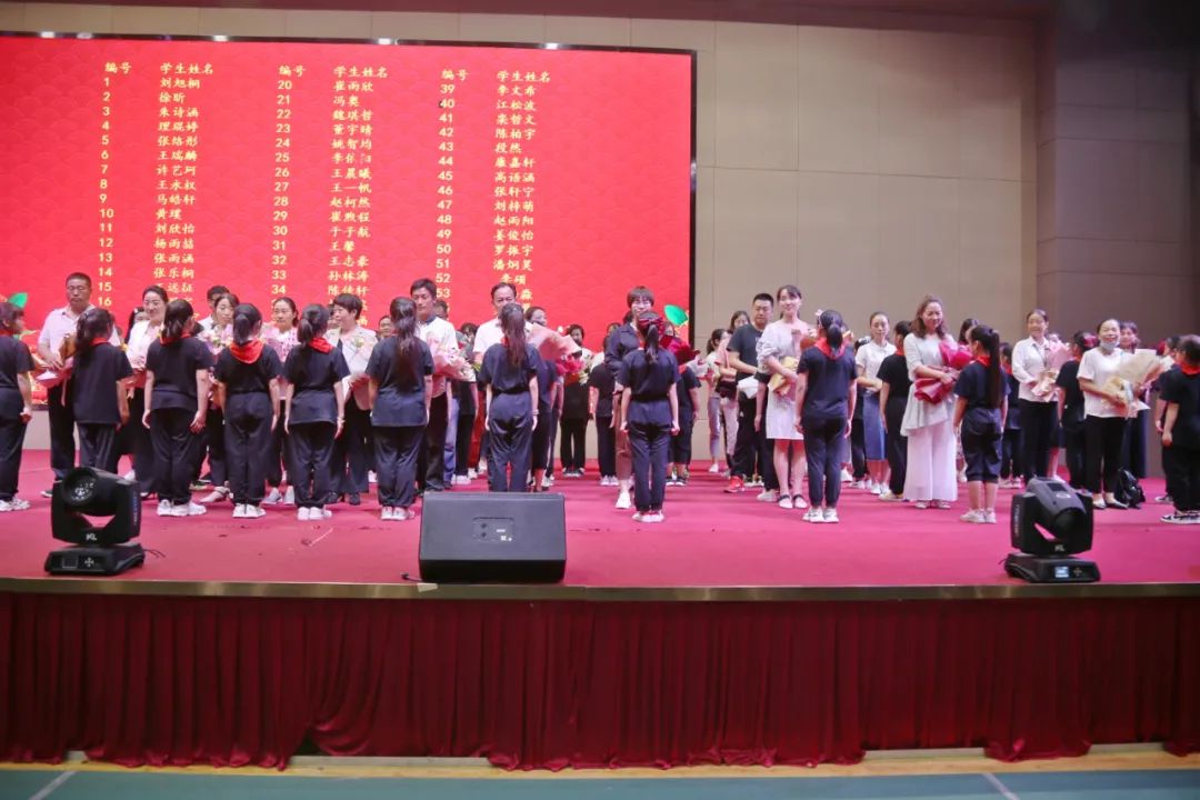 鮮花,掌聲,笑臉,燈光,音樂,畫面。三隊(duì)少先隊(duì)員們手捧鮮花,先后五次走上舞臺(tái),把250束鮮花獻(xiàn)給了250名家長老師,并齊聲向老師們祝愿:老師,節(jié)日快樂!