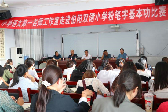 “漢字是中華民族的瑰寶,寫字教學是教師的一項基本功。此次縣硬筆書法協(xié)會應邀來到伯陽學校,舉行書法進校園活動。省書法家協(xié)會會員、縣書法家協(xié)會副主席李曉杰,省美術(shù)家協(xié)會會員劉龍飛作為特邀嘉賓現(xiàn)場揮毫潑墨與師生現(xiàn)場交流,將活動引向高潮?!笨h硬筆書法協(xié)會主席鮑雁冰說,結(jié)合自己多年對硬筆、毛筆習字的感悟,重點對教師進行“如何寫好字”的培訓,使教師知道練字既能提高寫字技能,又可修身養(yǎng)性,從而引發(fā)了教師練習書法的興趣。(③2)