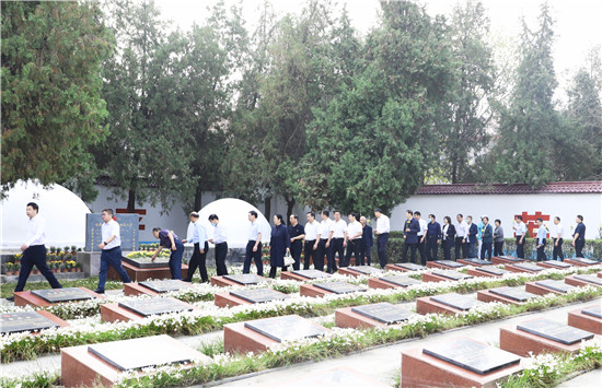 羅文閣緩步上前,代表縣四個(gè)班子仔細(xì)整理緞帶。全體人員面向烈士紀(jì)念碑行三鞠躬禮,并深情瞻仰烈士陵園,向英雄烈士獻(xiàn)上鮮花,表達(dá)對(duì)烈士的無(wú)限敬仰和哀思。①15