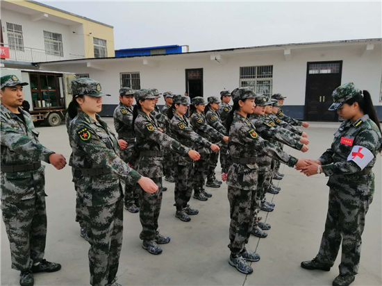 白衣天使愛武裝,聚焦打贏練武忙。在隊(duì)列訓(xùn)練中,20名女民兵按照教練的口令,一遍一遍的練習(xí)立正、稍息、停止間轉(zhuǎn)法,很快隊(duì)伍隊(duì)列有了起色,基干民兵魏慧娟剛開始還有些順拐,兩條腿也不聽使喚,教練員劉思嘉一遍一遍為她開小灶、糾正動作,三番五次,不厭其煩。終于,魏慧娟不順拐了,并通過加班加點(diǎn)、不斷刻苦的訓(xùn)練,成為了隊(duì)列訓(xùn)練的標(biāo)兵。