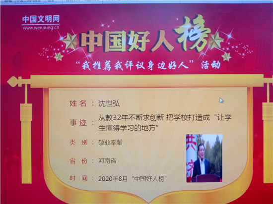 日前,中國文明網(wǎng)公布今年8月、9月中國好人評選結(jié)果:太康縣第一高級中學黨委書記、校長沈世弘從教32年不斷求創(chuàng)新,榮登8月敬業(yè)奉獻類“中國好人榜”;太康縣平安養(yǎng)殖專業(yè)合作社理事長王桂芳8年捐款捐物百余萬元幫助困難群眾,榮登9月“中國好人榜”。至此,太康縣中國好人上榜人數(shù)達66人,位居全國縣級市首位。