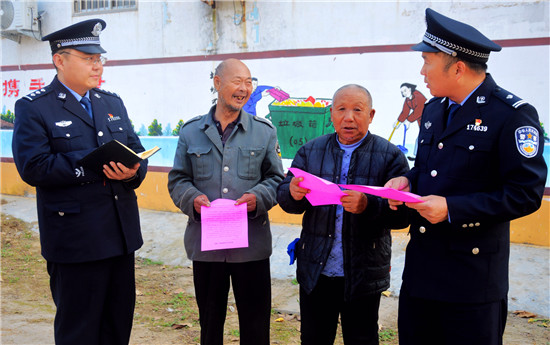 進(jìn)入冬季以來,商水縣公安局平店派出所以“發(fā)案少、秩序好、群眾滿意”為目標(biāo),不斷擴(kuò)大防范宣傳范圍,切實(shí)增強(qiáng)群眾的安全感。圖為該所民警在東鄧店村向群眾講解冬季安全防范常識。周口日報·周道客戶端記者 付永奇 通訊員 郭利軍 攝 ②10